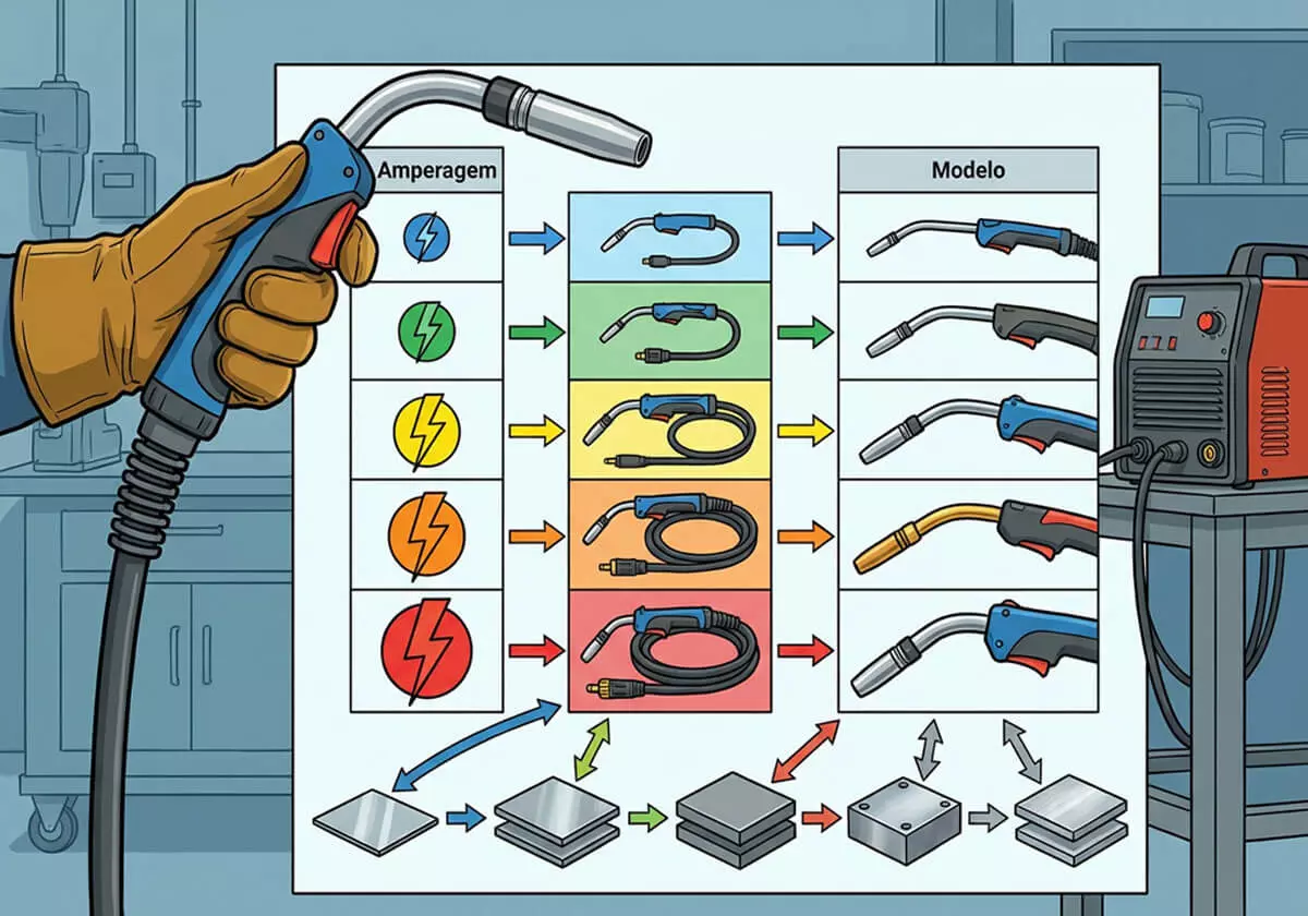 Saiba como escolher a tocha MIG/MAG ideal para sua máquina. Evite superaquecimento e melhore seu acabamento. Confira o guia técnico!